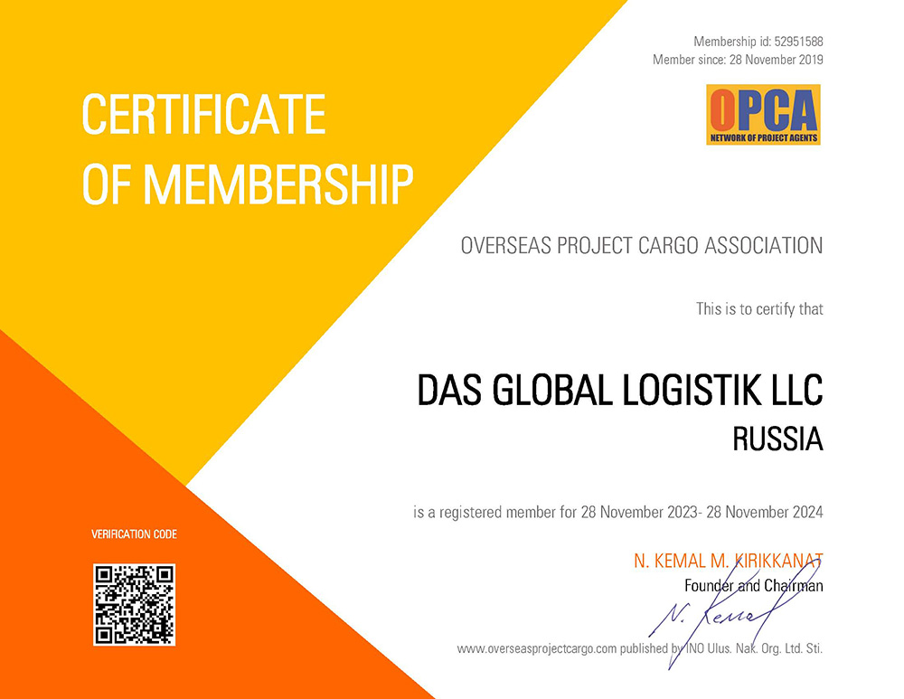 - Сертификат, подтверждающий членство в OPCA по проектным грузам на 2024 гг.