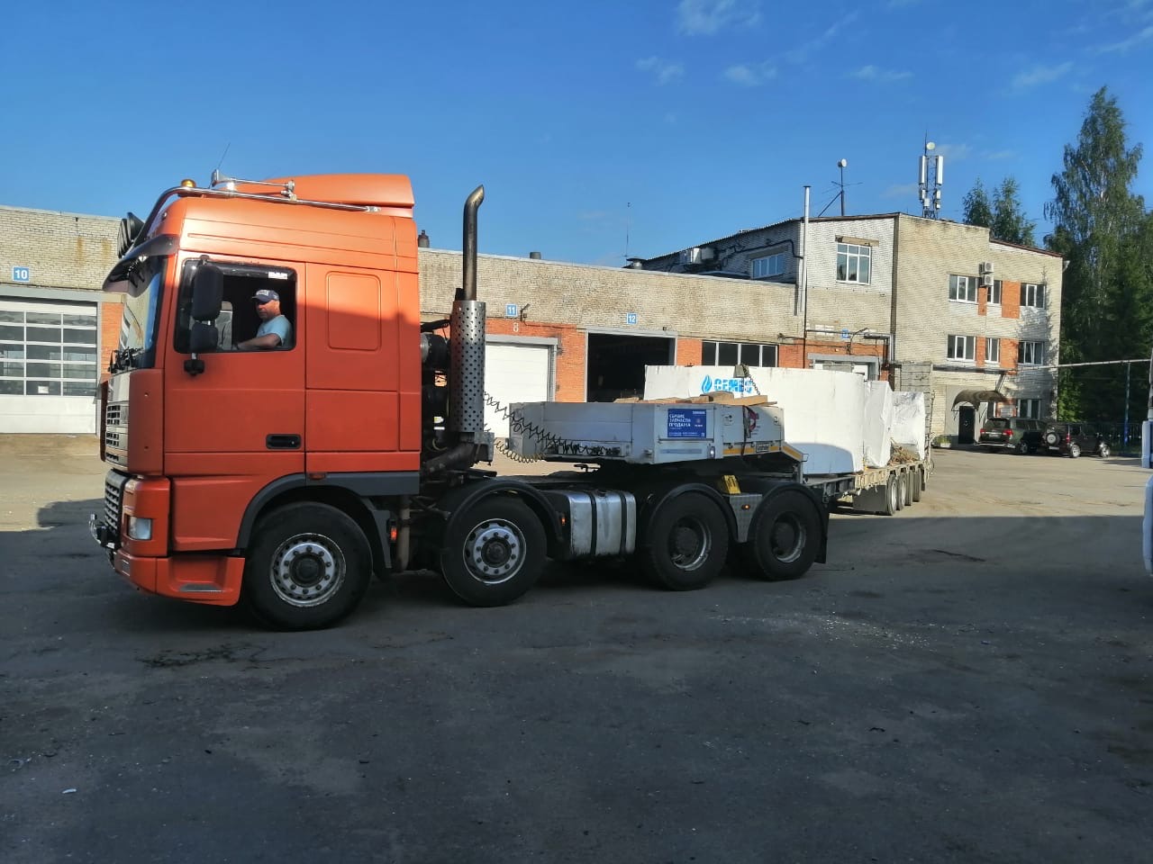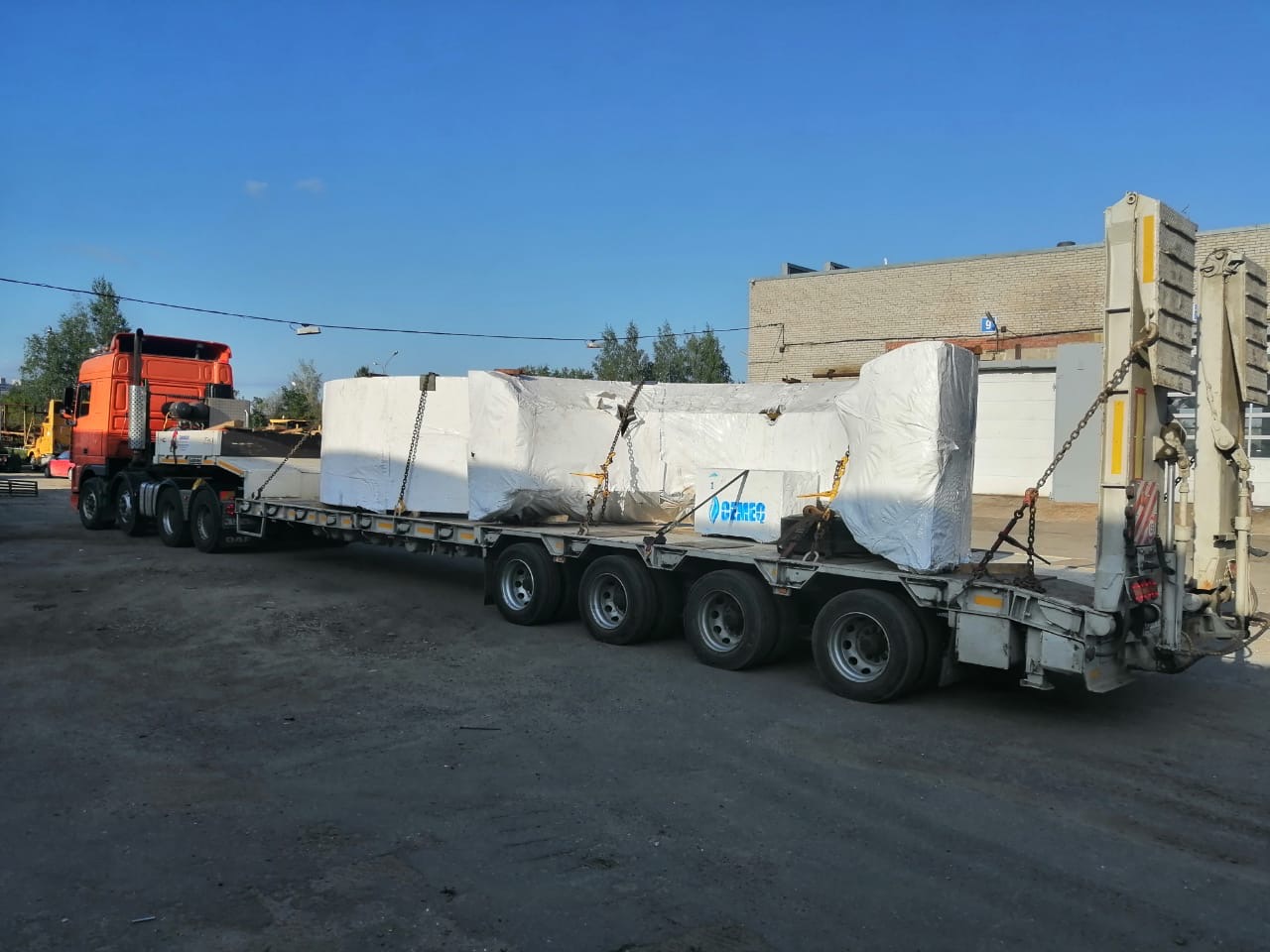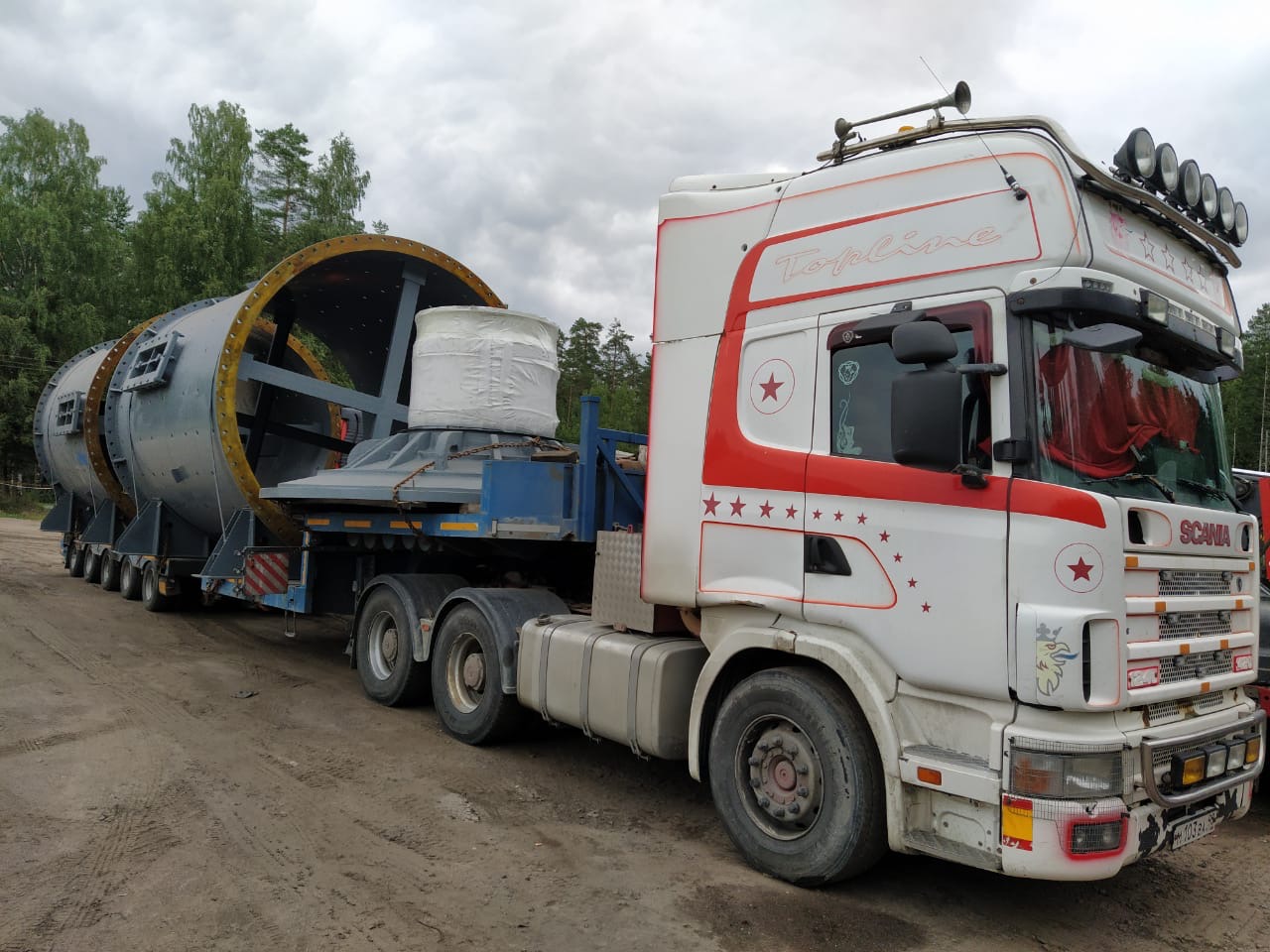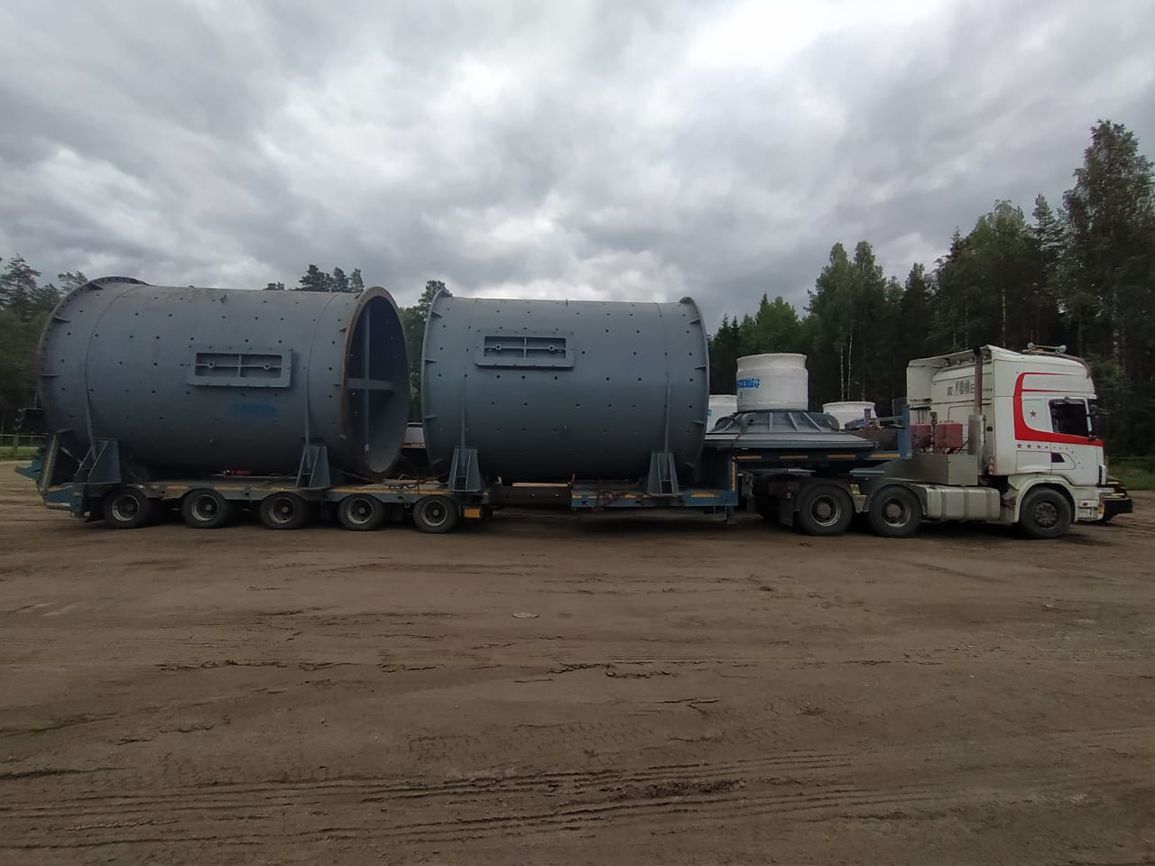 在摩尔曼斯克州运输用于研磨矿石块的超大型研磨机部件。